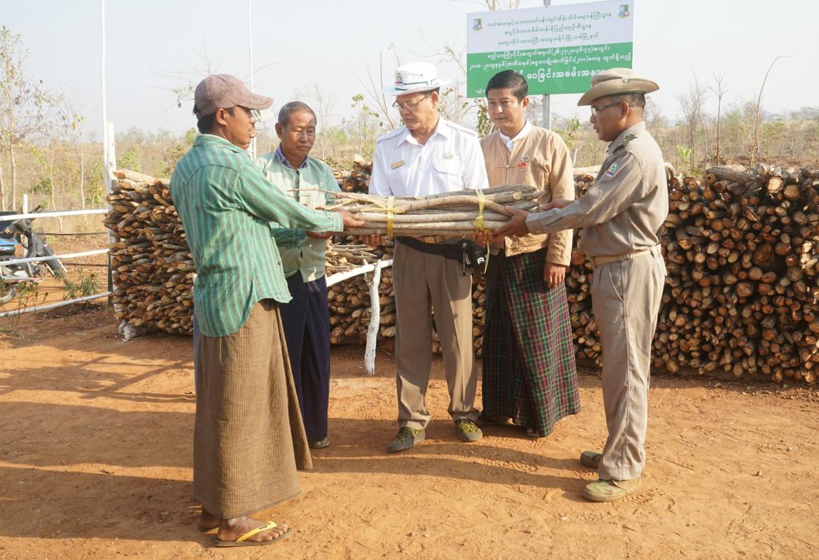 Fire woods were distributed free of charge to local people by the Township Dry Zone Greening Department at No-1 Environmental Conservation Station near the village of Sitha in Myothit township, Magway District, Magway Region this morning.