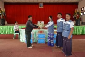 Fire victims who lost their houses in Nanwoehtaung village, Mongphyat township, Shan state (east) on 13 March were provided with relief items and cash at a ceremony held this afternoon at the meeting hall of the Township General Administration Department.