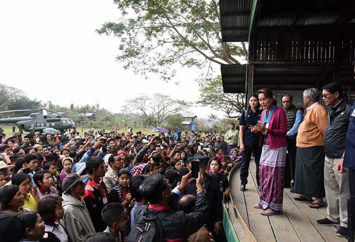 State Counsellor Daw Aung San Suu Kyi meets with locals in Htamanthi Village, Homalin