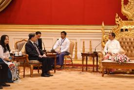 President U Win Myint received a delegation from the Socialist Republic of Viet Nam led by the Minister of Public Security, General To Lam, at the Presidential Palace in Nay Pyi Taw yesterday.