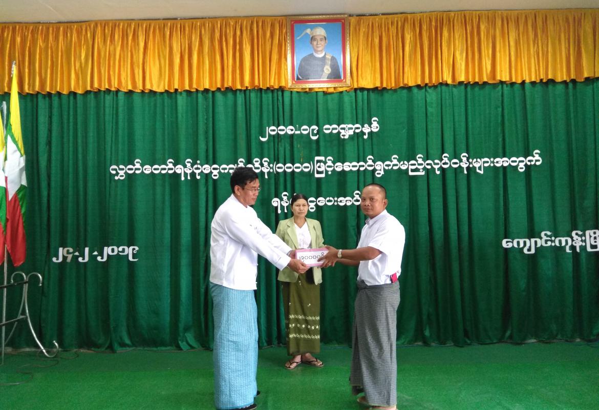 A ceremony to hand over Ks. 100 million of the regional development fund to the local officials was held at Aye Chan Thayar Hall of the General Administration Department in Kyaunggon Township, Ayeyawady Region this morning.