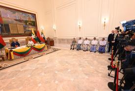 Myanmar Acting President & SSPC Chair Senior General Min Aung Hlaing and Belarus President Mr Aleksandr Lukashenko brief media on bilateral joint declaration