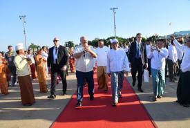 Acting President of the Republic of the Union of Myanmar and SSPC Chairman Senior General Min Aung Hlaing and his wife Daw Kyu Kyu Hla visit Shwehsandaw Pagoda, Strand Road in Pyay