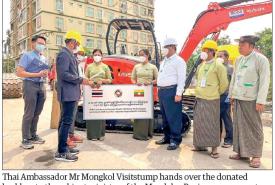 Thai-Myanmar Association donates backhoe, foodstuffs, and relief items to Mandalay