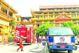SAC Chairman Defence Services C-in-C Senior General Min Aung Hlaing inspects damage at Maravijaya Buddha Image, religious buildings in precinct of Buddha Park