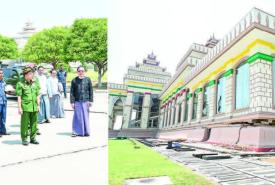 SAC Chair PM Senior General Min Aung Hlaing inspects quake-damaged parts of Hluttaw buildings