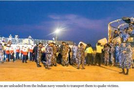 Indian naval ships arrive at Thilawa Port with rescue supplies