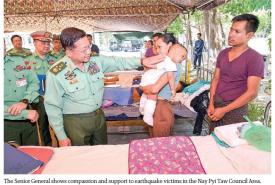 SAC Chair Defence Services C-in-C Senior General Min Aung Hlaing extends support to earthquake victims and Tatmadaw families