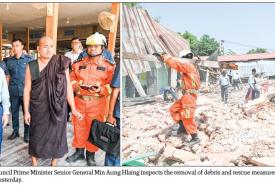 SAC Chairman PM Senior General Min Aung Hlaing inspects ongoing rescue, relief and rehabilitation operations in Nay Pyi Taw Council Area