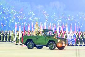 SAC Chairman Defence Services C-in-C Senior General Thadoe Maha Thray Sithu Thadoe Thiri Thudhamma Min Aung Hlaing delivers address at 80th Anniversary of Armed Forces Day Parade
