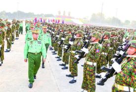 Tatmadaw members from parade columns take part in full-dress rehearsal