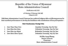 Republic of the Union of Myanmar National Defence and Security Council Notification 1/2026