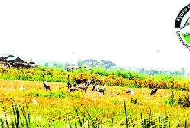 Surus cranes flock to Wakema after summer paddy harvest