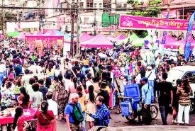 Funfair and festival market for Chinese New Year in progress in Yangon