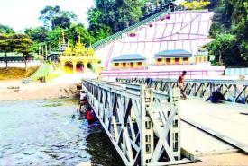 Steel Bailey bridge under installation at Mann Shwesettaw Pagoda