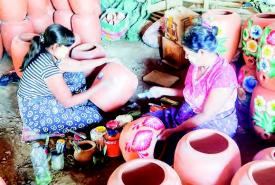 Students on excursion tour of observing pottery industry, laterite culture in Twantay Township