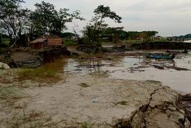 River bank erosion forces five households to relocate safer places in Nyaungdon Twsp.