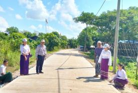 Concrete paving work of road in Pati Village in Hmawbi Township completed 90%