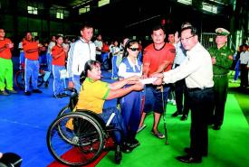 MoI Union Minister consoles para-athletes, inspects practice session of Chinlone group for National Sports Festival