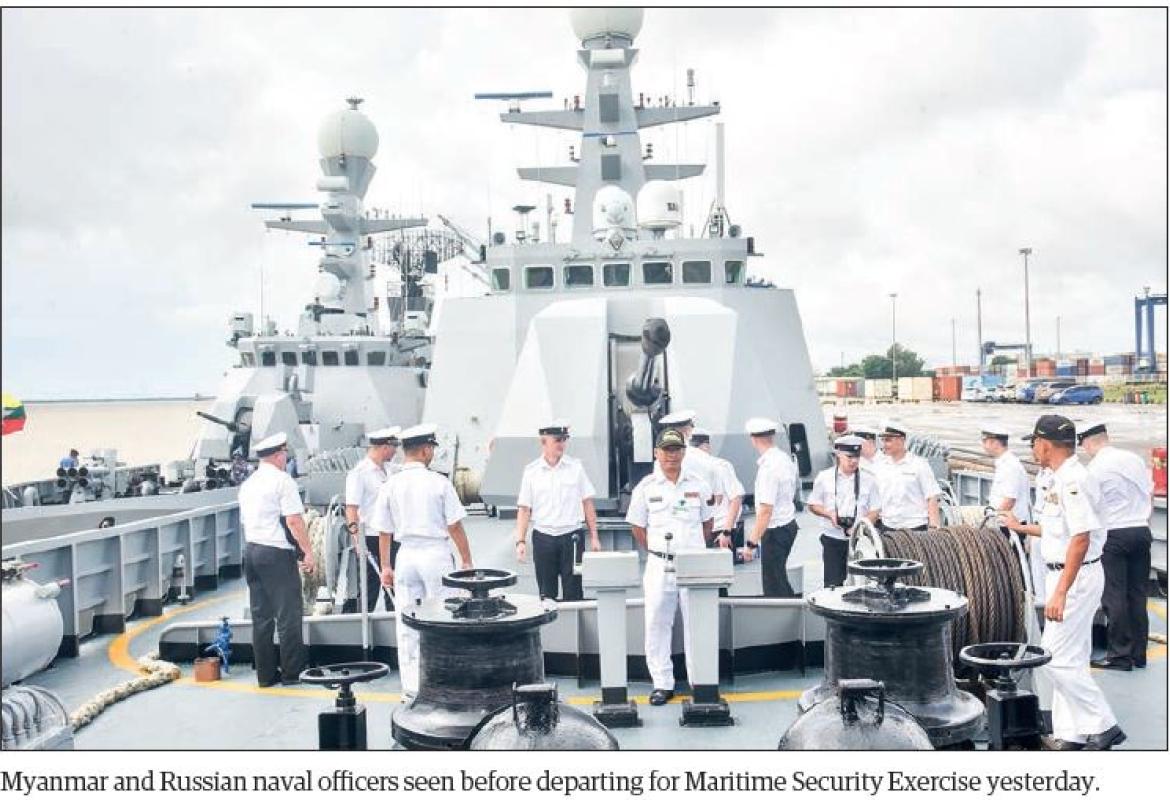 Myanmar and Russian navy ships head to naval exercise areas