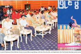 SAC Chair PM Senior General Min Aung Hlaing, wife Daw Kyu Kyu Hla watch Performing Arts Competition