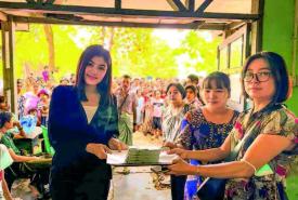 Actress Soe Pyae Thazin’s family provides relief aid to flood victims in Toungoo, Pyinmana