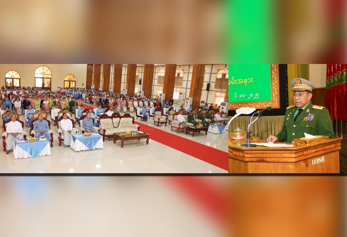 Acting President of the Republic of the Union of Myanmar and SSPC Chairman Senior General Min Aung Hlaing and his wife Daw Kyu Kyu Hla visit Shwehsandaw Pagoda, Strand Road in Pyay