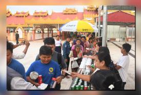 MPT lights lamps at three pagodas and donates to pilgrims for Tazaungdine Festival