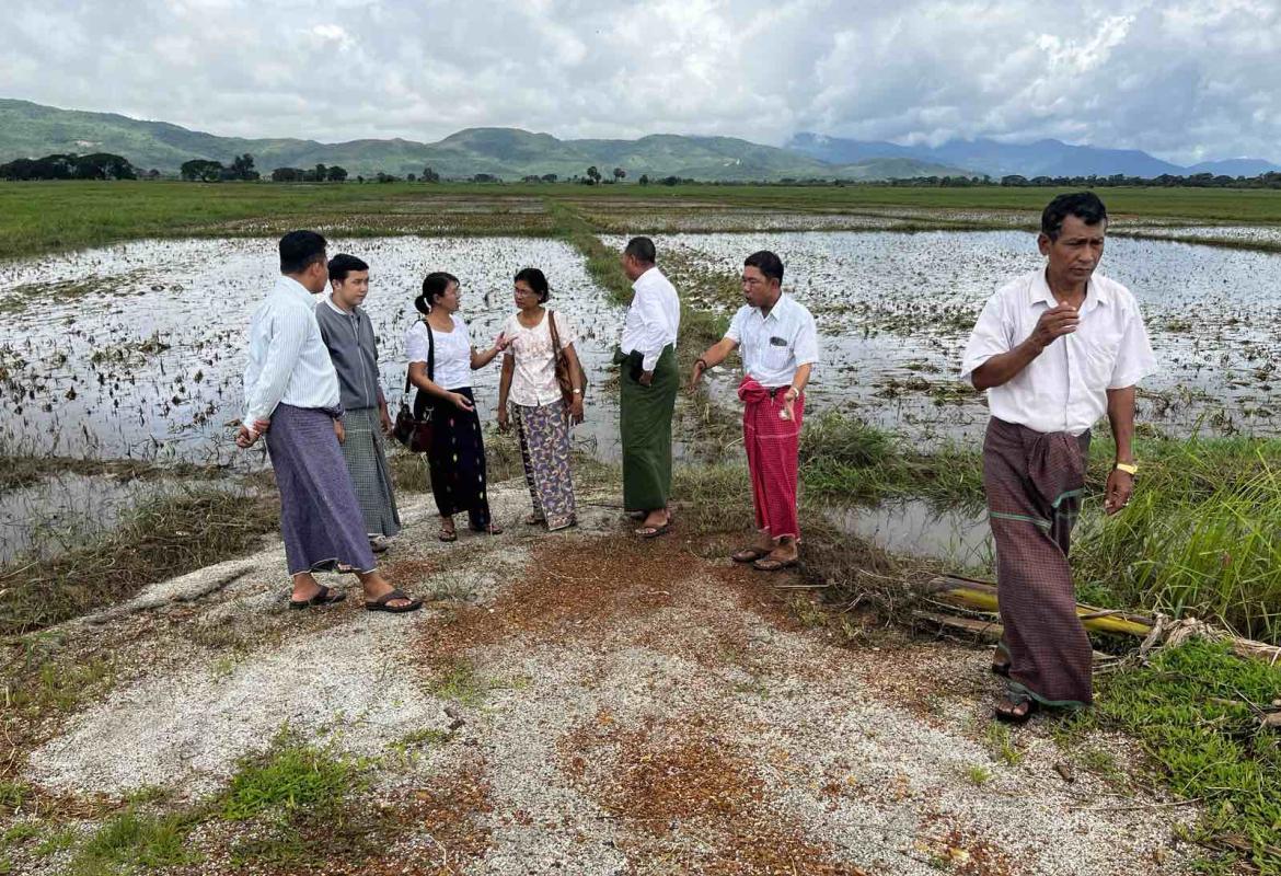 Farmland damaged by heavy rain inspected in Paung Township