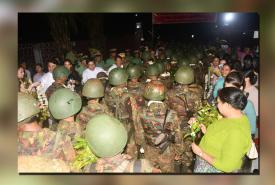 Triumphant Tatmadaw members greeted with ceremonial welcome