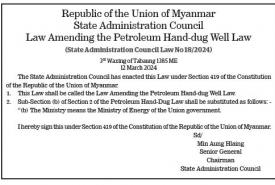 Republic of the Union of Myanmar State Administration Council Law Amending the Petroleum Hand-dug Well Law