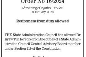 Republic of the Union of Myanmar State Administration Council Order No 16/2024