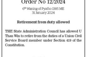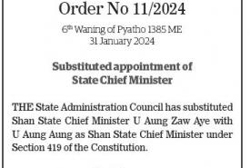 Republic of the Union of Myanmar State Administration Council Order No 11/2024