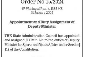 Republic of the Union of Myanmar State Administration Council Order No 15/2024