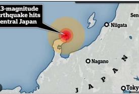 An earthquake with a preliminary magnitude of 6.3 struck Ishikawa Prefecture on the Sea of Japan side of central Japan and surrounding areas on Friday, but there is no threat of a damaging tsunami, Japan's weather agency said.