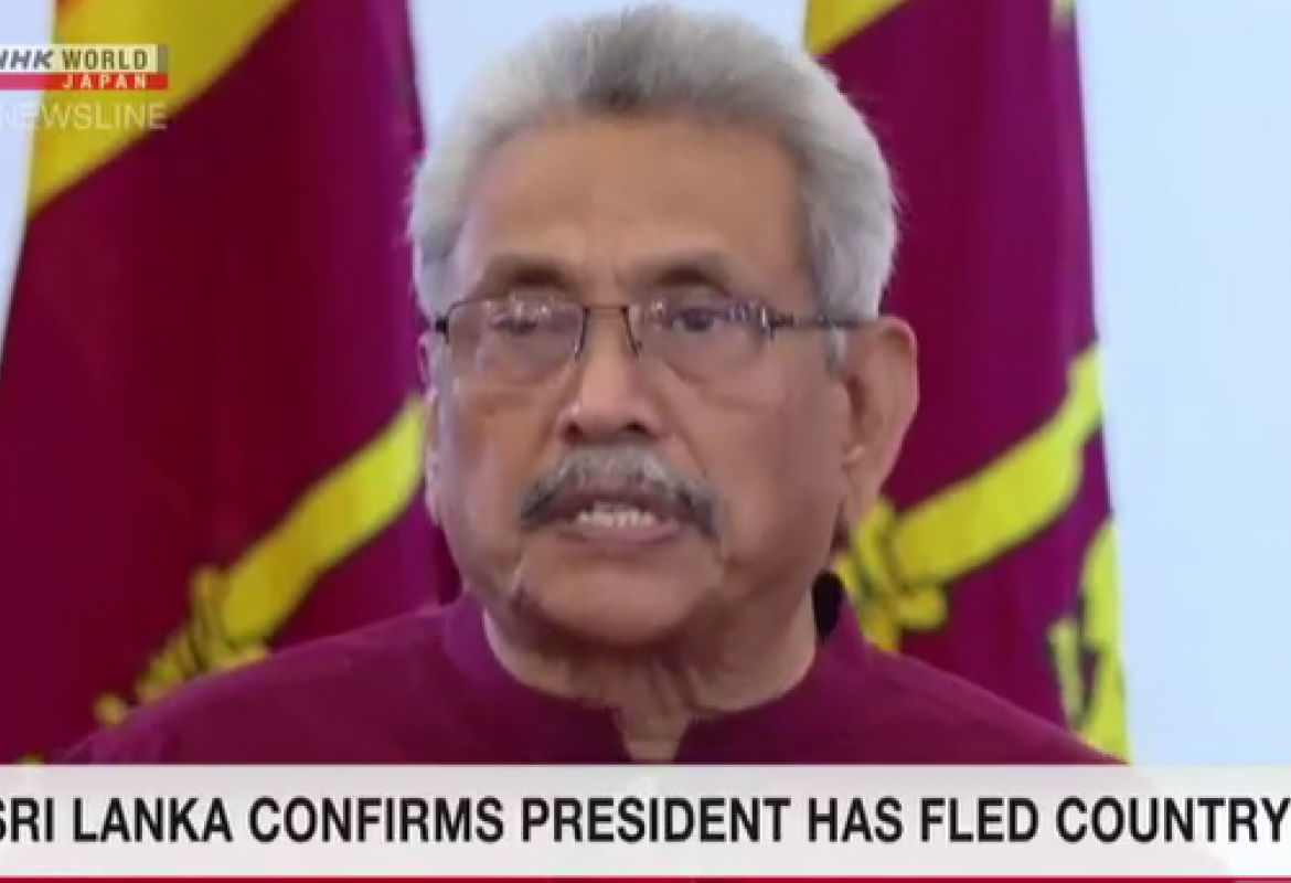 Sri Lanka's President Gotabaya Rajapaksa has fled the country. He was set to relinquish power after protesters stormed his official residence over the weekend.