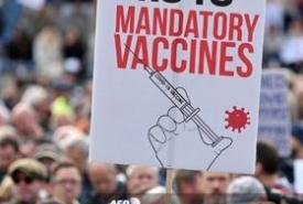 London police said they arrested 10 people and four officers were injured as they broke up a thousands-strong demonstration against British coronavirus restrictions Saturday.