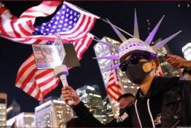 A huge crowd of anti-government protesters in Hong Kong has rallied to welcome US legislation that supports human rights and democracy in the territory.