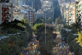 Around 350,000 people rallied in downtown Barcelona on Saturday, turning the streets into a sea of independence flags in the latest mass protest against Spain's jailing of nine separatist leaders.