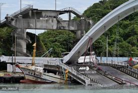 Rescuers were scrambling on Tuesday to reach six people feared trapped after a bridge collapsed in Taiwan, smashing onto a group of fishing boats moored underneath.