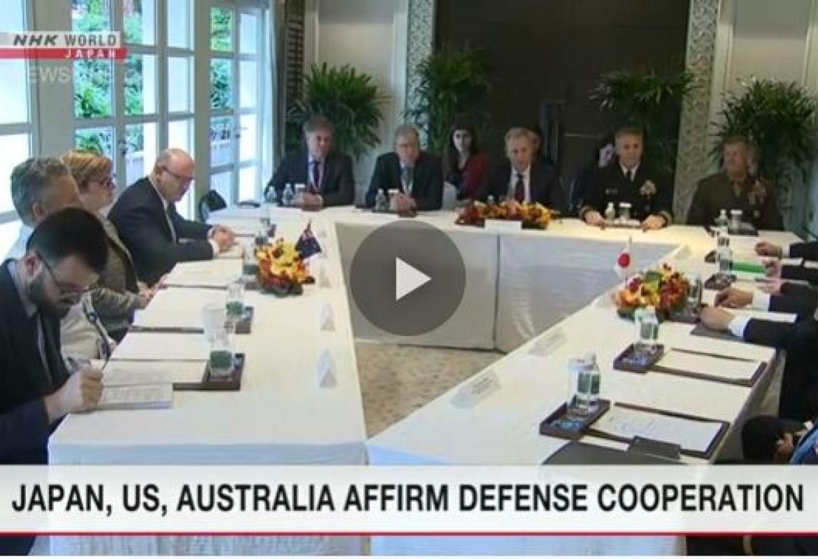 Japan's Defense Minister Takeshi Iwaya has affirmed with his US and Australian counterparts that their countries will strengthen cooperation, and oppose any unilateral attempt to change the status quo in the South China Sea.