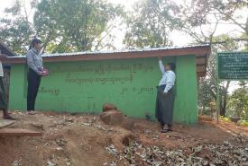 Officials from the Department of Rural Development under the Ministry of Agriculture, Livestock and Irrigation inspected work progress on rural water supply projects in hilly areas in Ngaphe Township, Magway Region this morning.