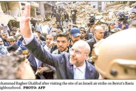 Iran parliament speaker visits Beirut site of deadliest Israeli strike