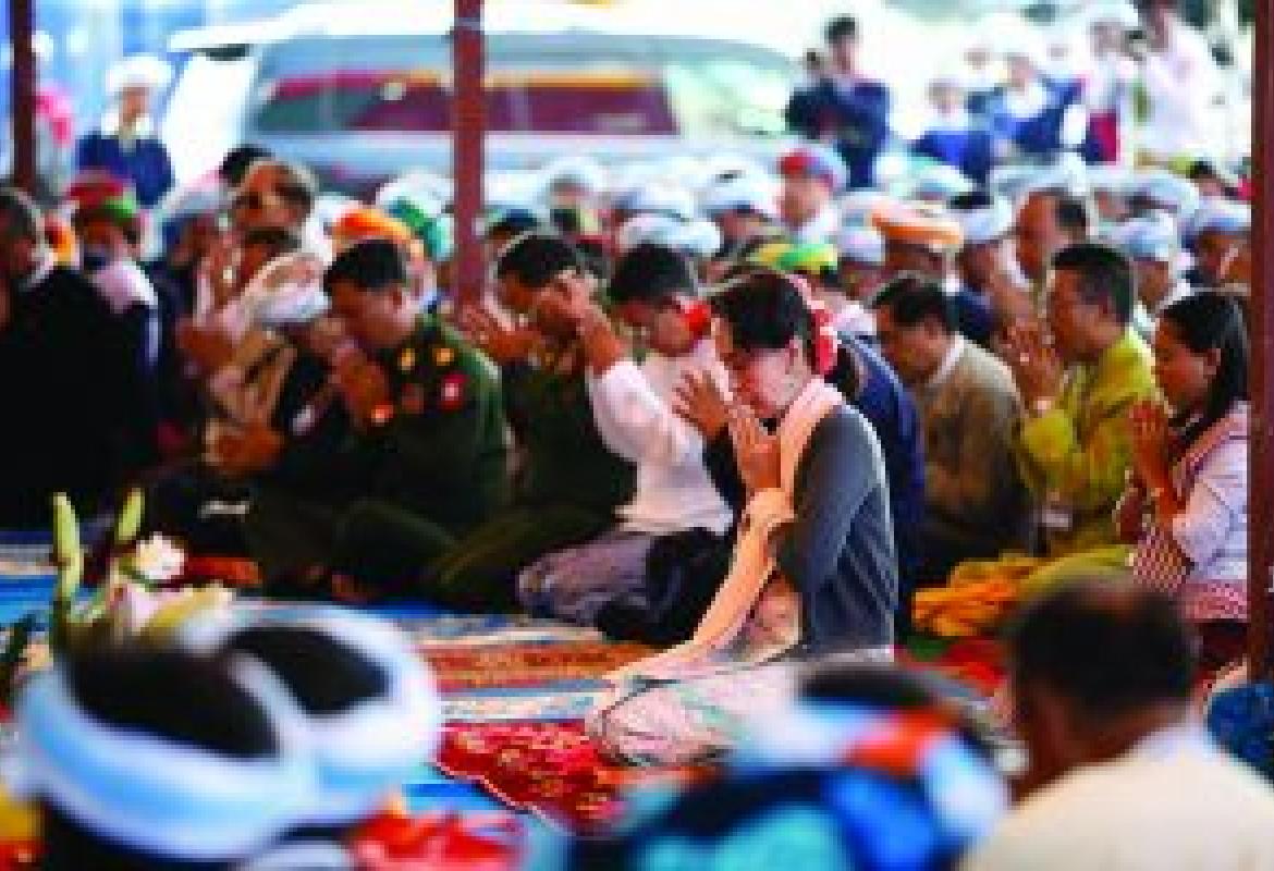 State Counsellor Daw Aung San Suu Kyi attended a ceremony to enshrine religious objects in the Maha Bodhi pagoda located on Poe Panta pagoda hillock in Kyauktalonegyi Town of Taunggyi District in southern Shan State yesterday morning,