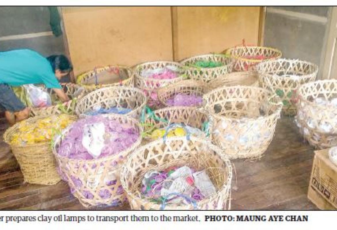 Thadingyut Festival celebrants boost sales of clay oil lamps