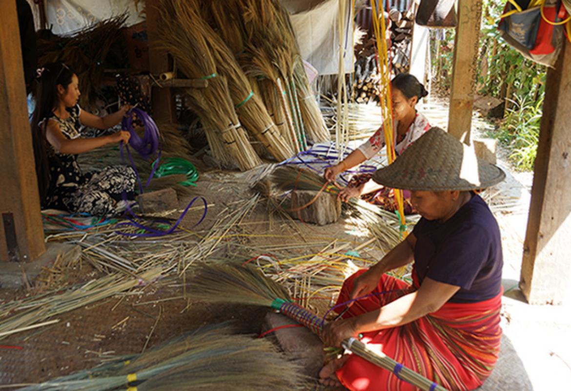 Local residents of Letpadan village, Mohnyin Township, are earning extra income by working in the traditional grass broom making businesses, said U Tun Tun Oo, the ward administrator from the Letpadan village.