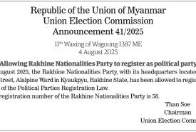 The Union Election Commission of the Republic of the Union of Myanmar issues Announcement No. (55/2025) dated August 18, 2025 (Part (1) of the multi-party democratic general election for each parliament will begin on December 28, 2025 (Sunday))