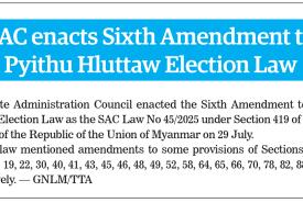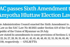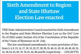 Sixth Amendment to Region and State Hluttaw Election Law enacted