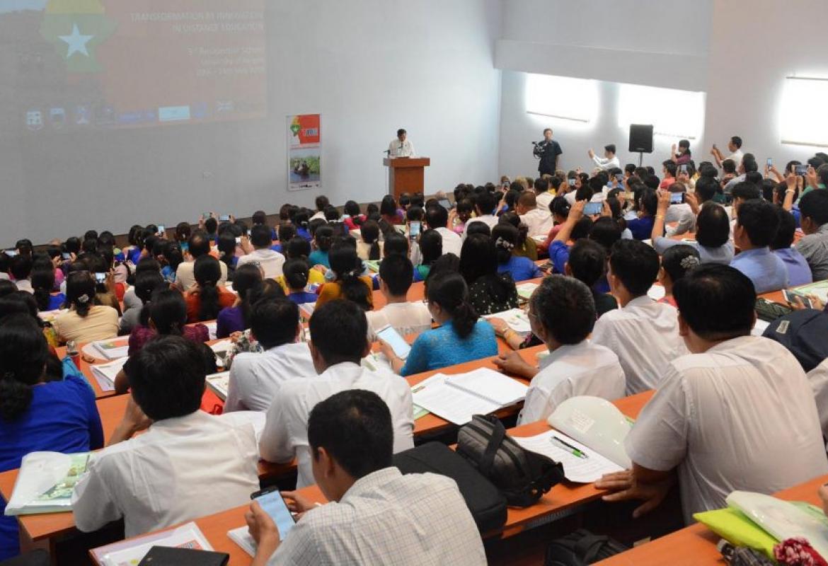 Yangon University held a ceremony for the opening of the 3rd Residential School by TIDE (Transformation by Innovation in Distance Education) at its Scientific Research Building yesterday morning.