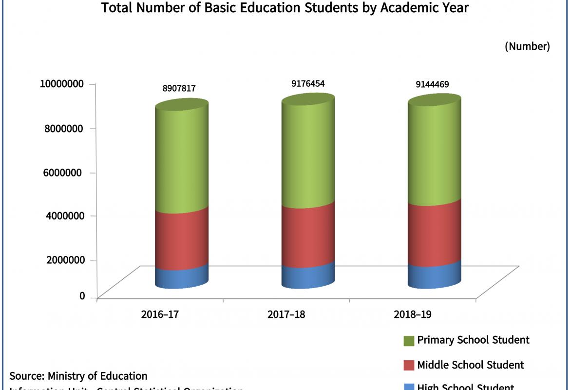 More schools have been opening in the states and regions year by year, and private schools have been permitted to function in accordance with the by-laws. The number of private schools has risen from 585 earlier to 896 in 2018-2019 Academic Year.
